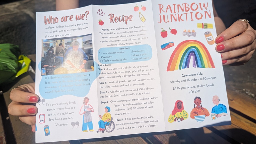 In this project I worked on the recipes which we decided to include in the flier- these recipes were meant to be both easy and budget friendly. Coming at it through this angle, I was able to develop a series of recipes (with the best chosen in the end) which I felt reflected these goals, improving my professional skills as this is directly related to my course. Whilst the development of the recipes was fun for me as a creative challenge, going into Rainbow Junktion with Kate to see the daily routines for the chefs and volunteers really helped show me the sense of community in the food bank. Seeing this I genuinely felt so appreciative for community initiatives such as this. Working within a team where not the entire group was STEM based also was a new opportunity for me as well. Seeing Kate work in a journalistic capacity was so refreshing to see, and has helped me to see how a beneficial interview should be conducted (helping me in my job also).